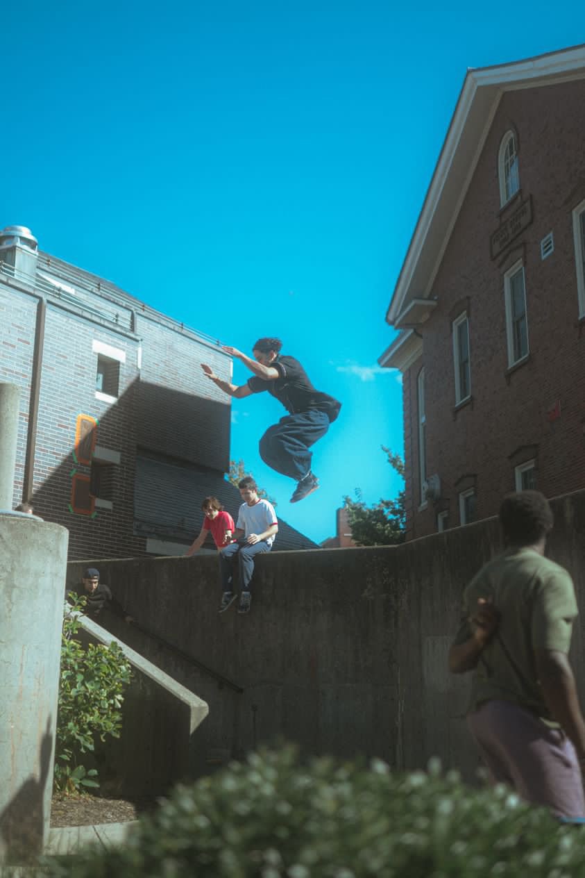 When people ponder the last time they truly enjoyed moving their body around, they often will bring up fond memories of themselves at a park or playing with friends, a pastime that society has conditioned us to outgrow. We usually associate having fun by climbing monkey bars, jumping off slides, and hopping over fences as something for children playing around or viewed skeptically as behavior typical of troublemakers seeking a quick escape. But what if someone never lost that innate playfulness with movement? What would that be called? I would call it parkour.